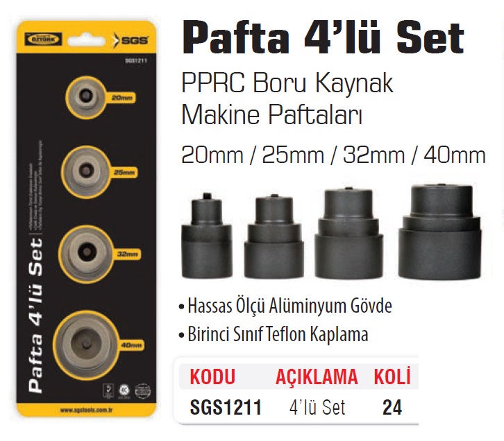 ÖZTÜRK PAFTA PPRC BORU 4 LÜ SET 20-25-32-40 SGS1211