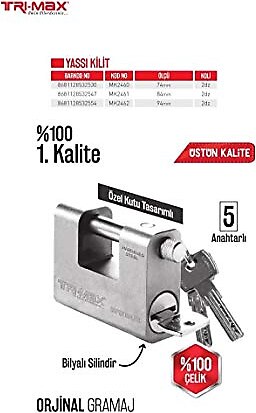 BAY-TEC TRI-MAX ASMA KİLİT KAYAR MİLLİ 60MM MK2456
