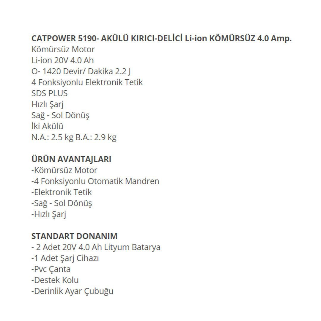 CAT AKÜLÜ KIRICI DELİCİ KÖMÜRSÜZ 5190