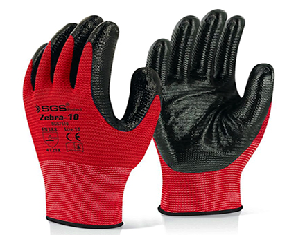 ÖZTÜRK NİTRİL KAPLI ÖRME ELDİVEN KIRMIZI SİYAH ZEBRA SGS7110 10 NO