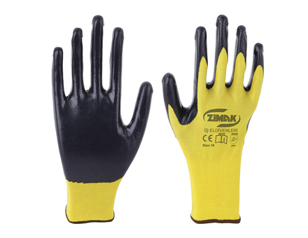 ZİMAK ELDİVEN SARI SİYAH 10 NO EL105=NİTRİL KAPLAMA*
