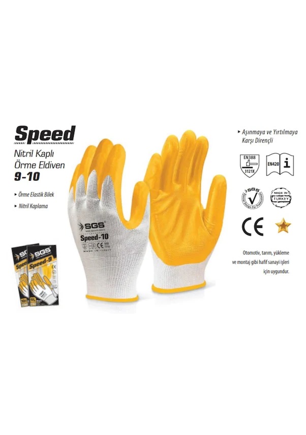 ÖZTÜRK NİTRİL KAPLI ÖRME ELDİVEN SARI BEYAZ -10 SGS7710