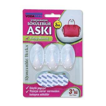 VODASEAL 3218 İZ BIRAKMAZ 3 LÜ ASKI OVAL PLASTİK BEYAZ 2KG TAŞIMA